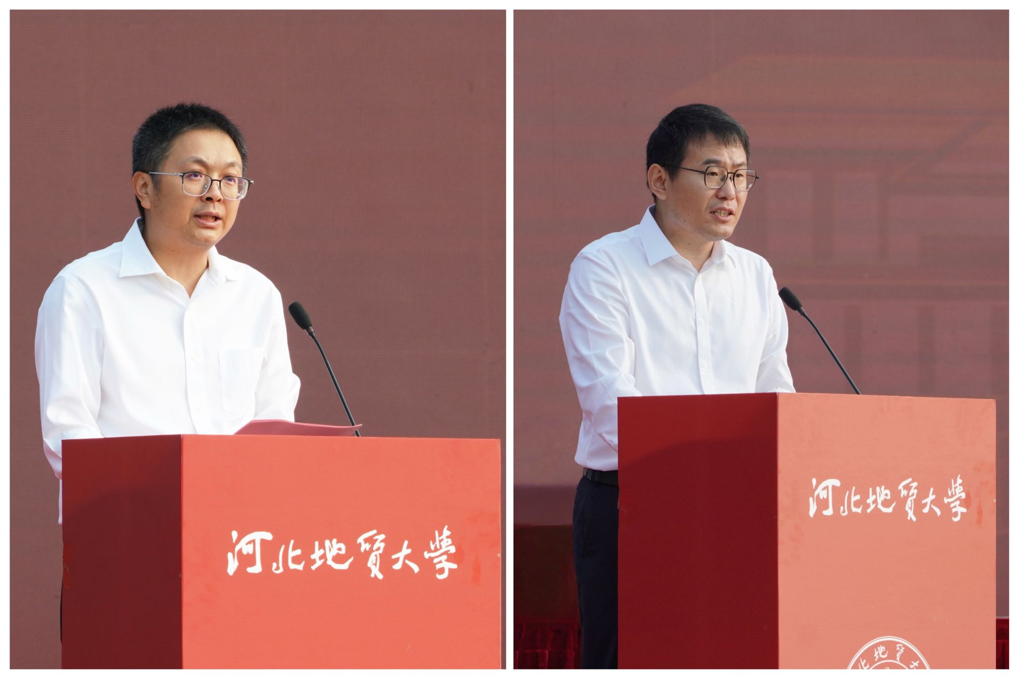 在校生代表刘朔彤、研究生新生代表龚星硕、本科新生代表马伊轲分别发言,从不同角度表达了对大学生活的憧憬、对学术理想的追求以及对“地大人”身份的认同与自豪。