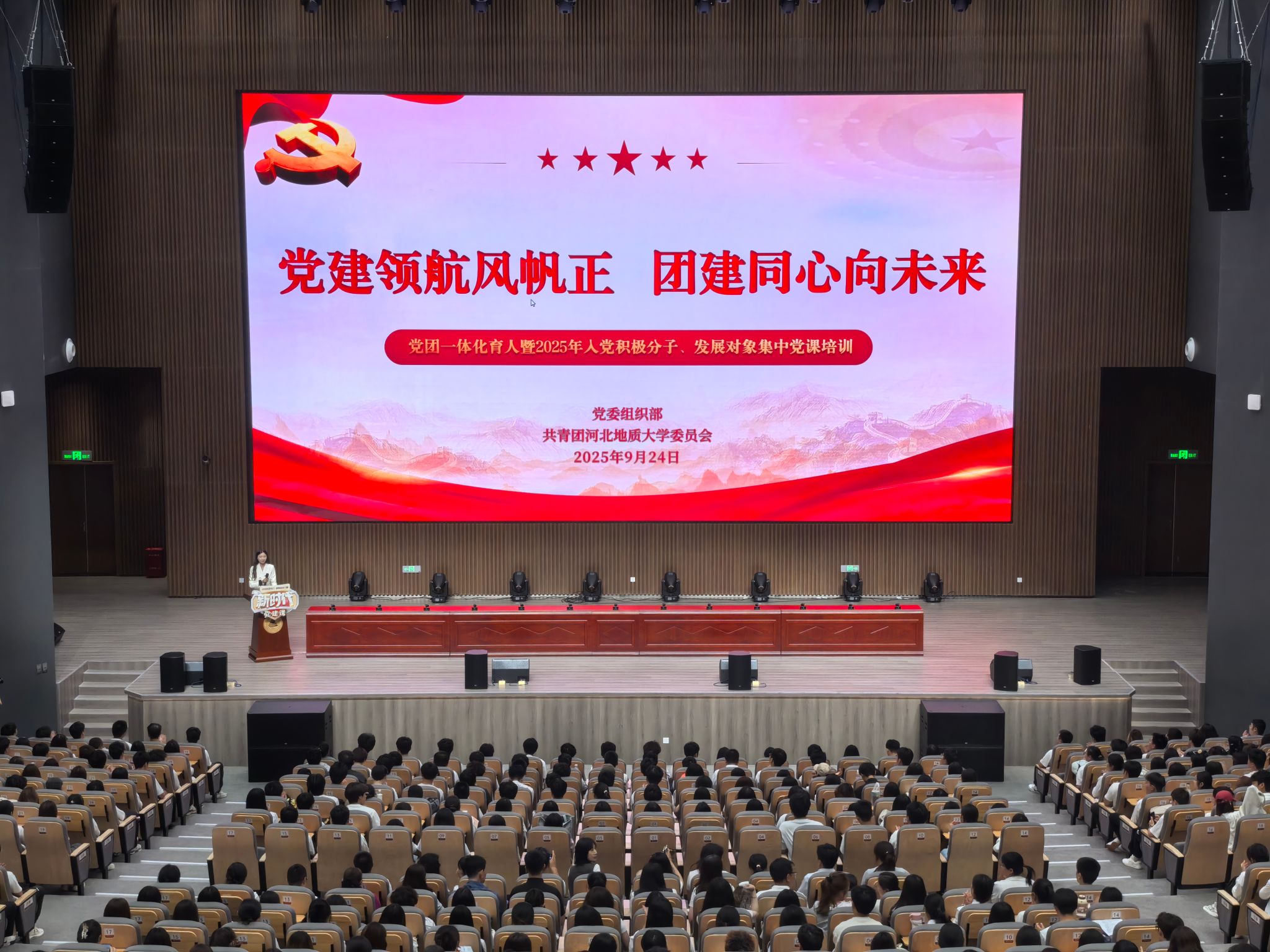 9月24日,我校在春秋讲堂举行大型沉浸式党建主题教育展演活动——《新时代党建课》。本次活动由河北广播电视台联合学校党委组织部、共青团河北地质大学委员会共同举办,学校2025年入党积极分子、发展对象及第十一期弘毅团干部读书班学员代表共计700余人参加此次活动。党委组织部、校团委相关负责同志及各学院(部)党委书记、副书记、团委书记参加此次活动。