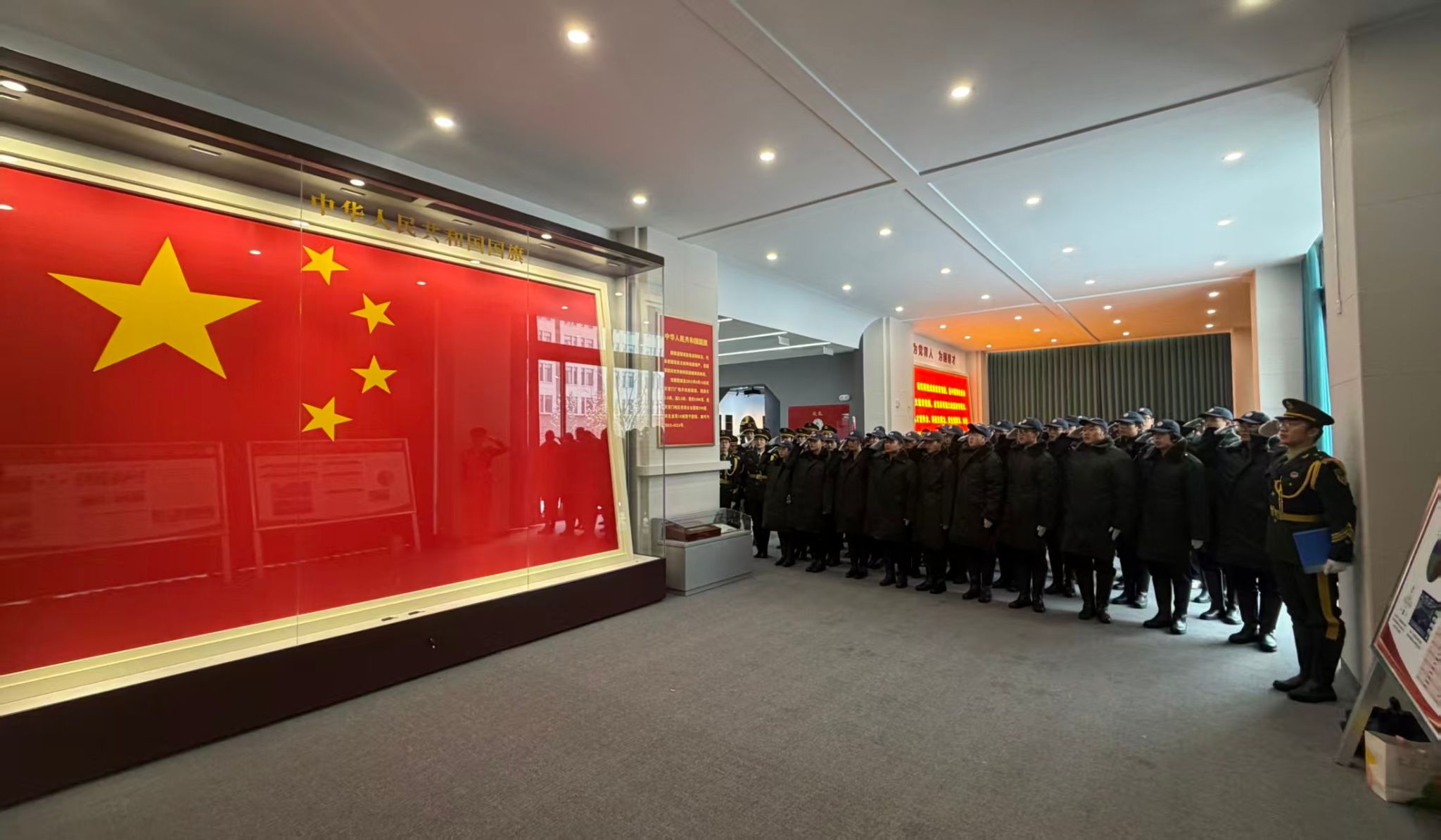 活动伊始,校国旗护卫队全体人员、地球科学学院副书记刘艳及全体辅导员、学生党员代表齐聚校史馆内国旗陈列区,师生们面向国旗肃穆而立、齐唱国歌。校国旗护卫队大队长讲述了这面编号为2013-0124国旗的珍贵来历与特殊意义,并向同学们发出“铭记历史,吾辈自强”的倡议。地球科学学院学生代表以“三光荣、四特别”的地质精神为核心,讲述新时代地大学子地质报国的责任与行动。
