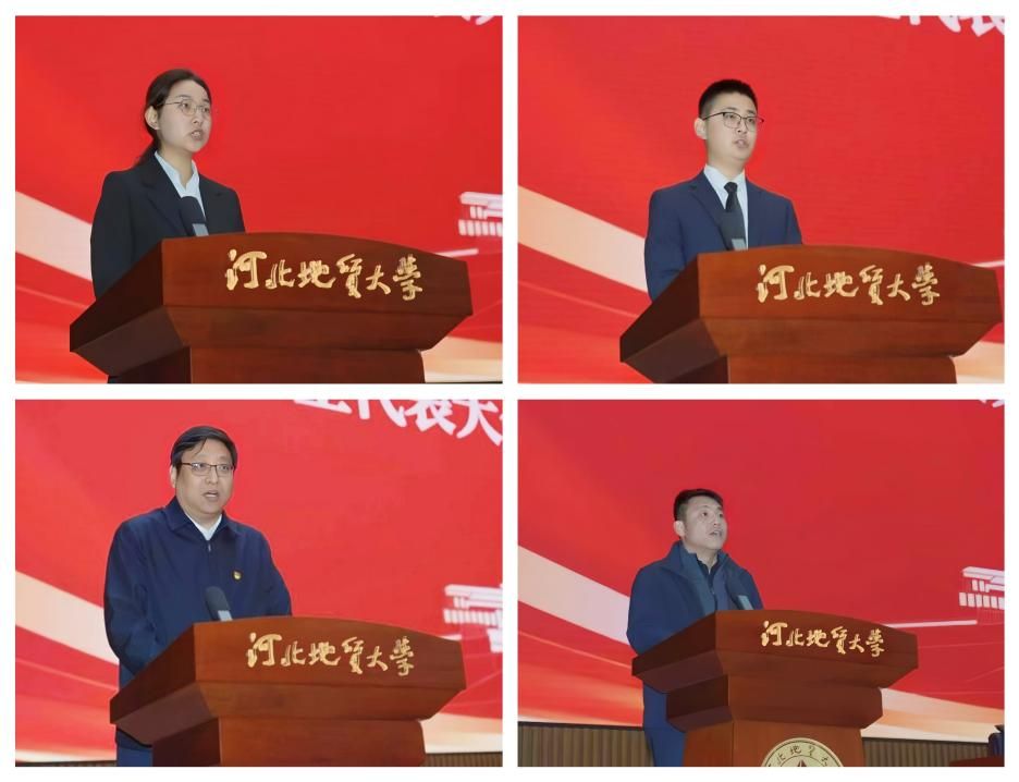 研究生学院院长曹南斌、学生工作处副处长王祥分别致辞,他们对大会的召开致以祝贺,希望学生组织、学生骨干凝聚起全校学子同心向学、砥砺奋进的磅礴力量,带领全校同学将个人理想融入学校发展大局,在地质报国的征程中展现青春担当。